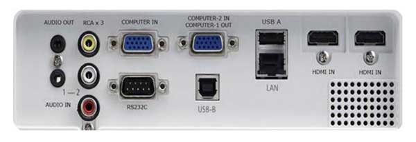 Cổng kết nối vào: 1 × RGB / Component (D-Sub 15Pin), 2 × HDMI Type A (19Pin, HDMI ® Connector) HDCP supported, 1 × Video (RCA), 1 × (L /R) RCA Audio, 1 × Stereo Mini Audio